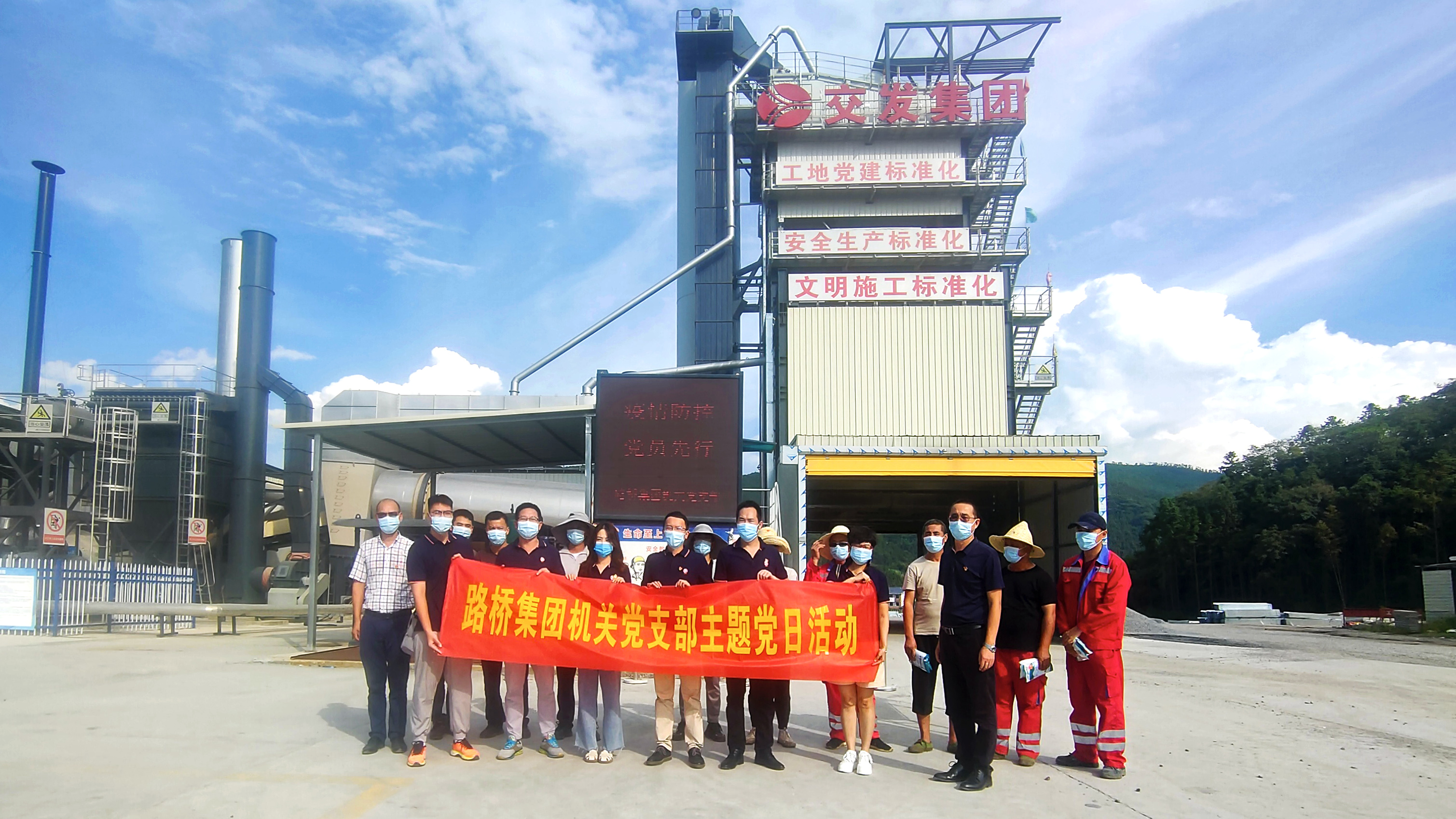 疫情就是命令,防控就是責任。為強化疫情防控組織領導,落實市交通檢疫組《關于加強當前新冠肺炎疫情防控工作的通知》文件精神,充分發(fā)揮基層黨員的戰(zhàn)斗堡壘和先鋒模范作用,8月18日,市路橋集團機關黨支部深入瀝青拌合站項目開展“疫情防控 黨員先行”主題黨日活動,為項目一線工人發(fā)放口罩、消毒液、酒精等防疫物資,現場宣講防疫知識、政策,指導日常防疫、應急隔離等工作,活動現場防疫氛圍濃厚。