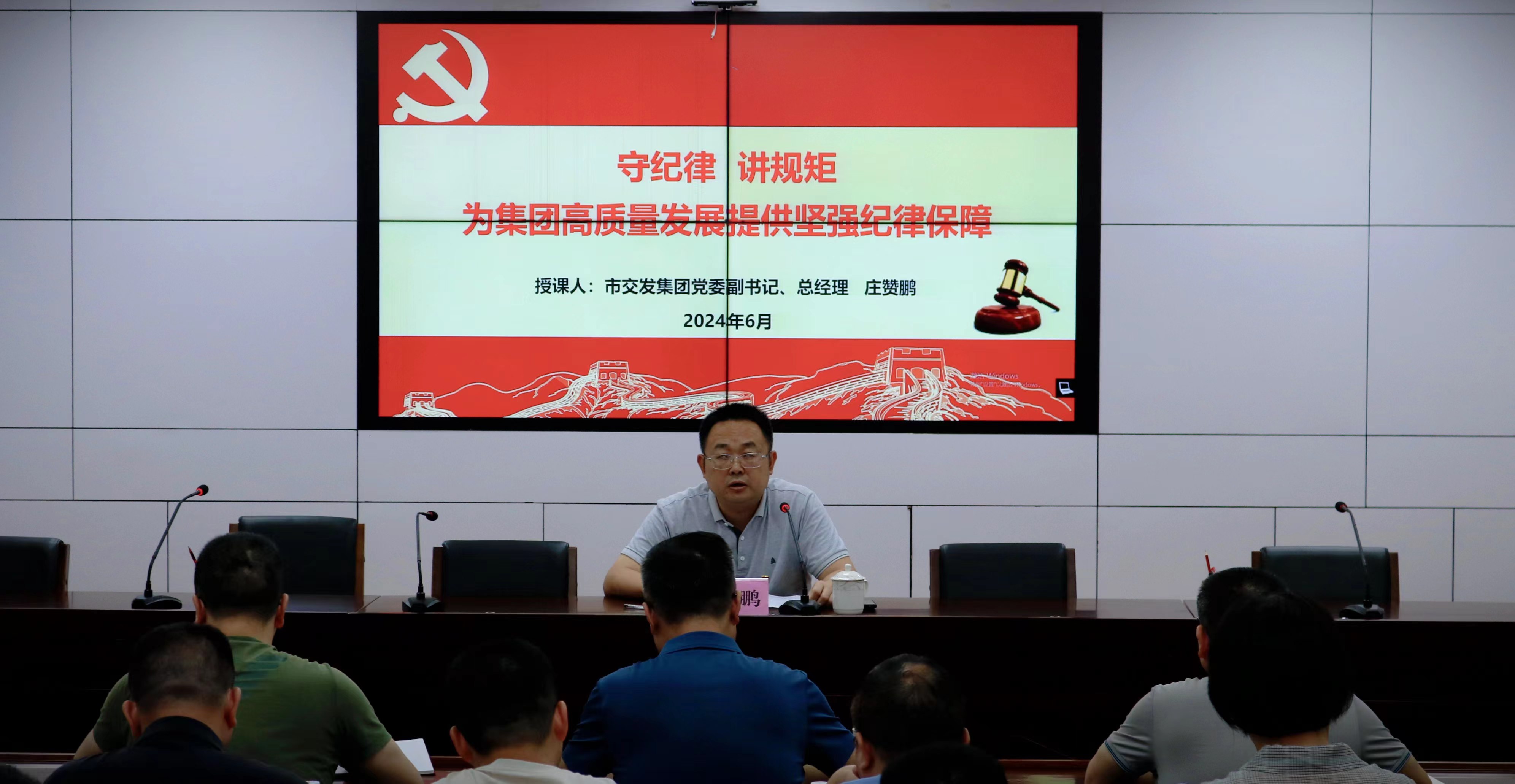 為全面領(lǐng)會《中國共產(chǎn)黨紀律處分條例》的內(nèi)涵要義和實踐要求,引導(dǎo)集團廣大黨員領(lǐng)導(dǎo)干部自覺做學紀、知紀、明紀、守紀的表率,6月24日,市交發(fā)集團黨委副書記、總經(jīng)理莊贊鵬到市路橋集團掛點昌盛公司黨支部講授題為《守紀律 講規(guī)矩 為集團高質(zhì)量發(fā)展提供堅強紀律保障》的專題黨課。