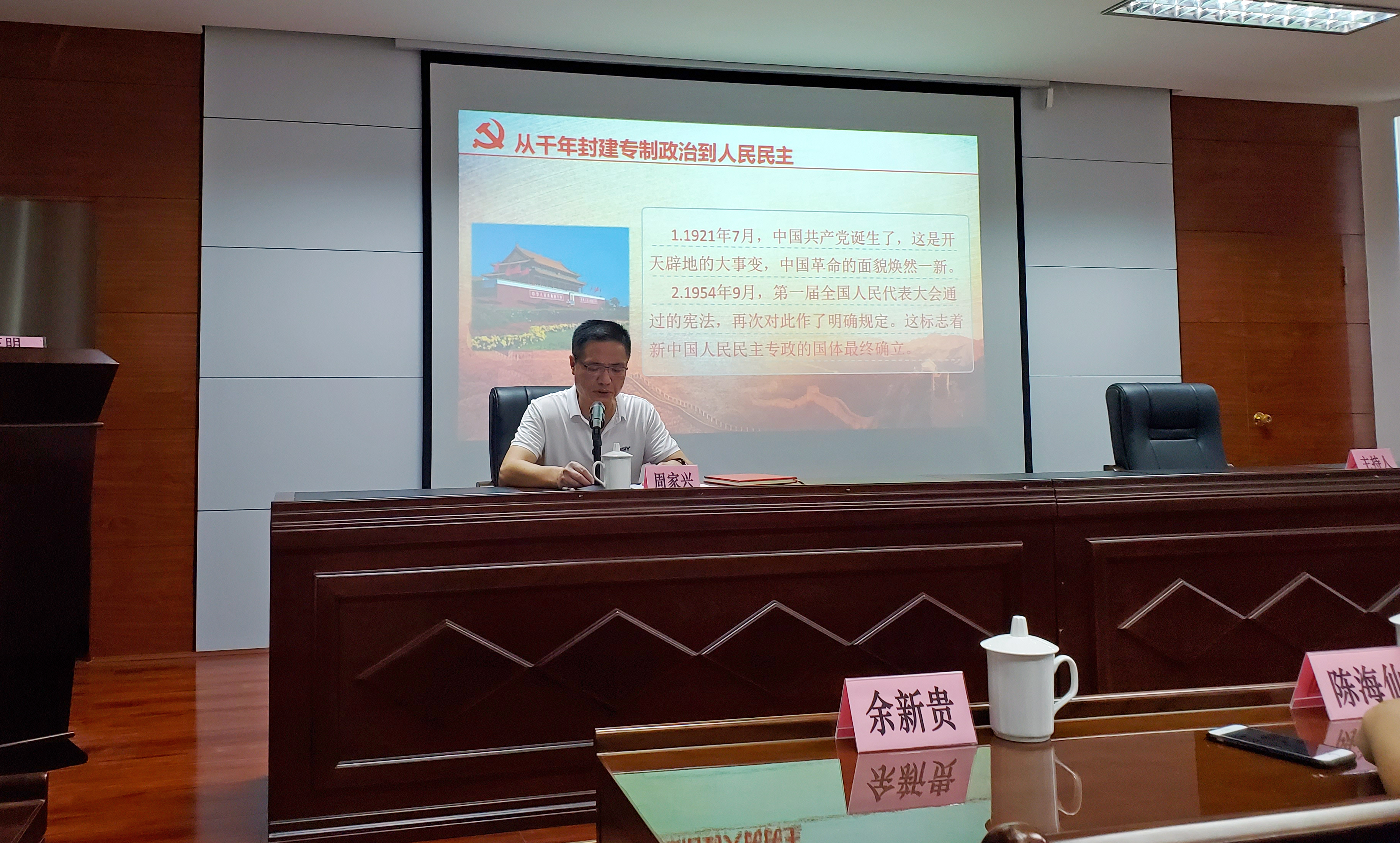 課上,周家興緊扣全會主題,圍繞“中國建立人民民主專政制度”、“中華民族由不斷衰落持續(xù)走向繁榮富強”、“中國人民實現(xiàn)從站起來、富起來到強起來的偉大目標(biāo)”三個方面,生動介紹了黨的百年光輝歷程。