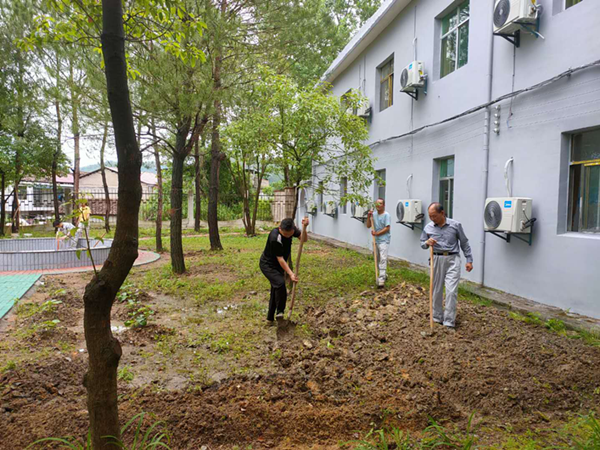 ――記南城分公司生活區(qū)建設(shè) 春尾夏初,南方的雨水總是格外的充盈,將漫山遍野都浸綠。借著雷雨過后難得的休憩,呼吸著清爽的空氣,迎著充滿青草香味的晨風(fēng),兗州中材南城分公司全體員工開始了新一輪的生活區(qū)綠化建設(shè)。 南城分公司于2020年3月整體搬遷至新生活區(qū),搬家之前,大家就經(jīng)過多次熱烈的討論,滿懷憧憬計(jì)劃新家的樣子,哪里要種樹,哪里要養(yǎng)花,經(jīng)常在歡聲笑談中就已敲定。搬遷后分公司積極參照項(xiàng)目形象建設(shè)標(biāo)準(zhǔn),結(jié)合群議方案進(jìn)行生活區(qū)建設(shè),向花園式園區(qū)、田園式生活大步前進(jìn)。 今天的任務(wù)十分“艱巨”,要將生活區(qū)后院改造成菜園。大家熱情高漲,自發(fā)地分成多個(gè)小組墾荒,前面拿鐵鍬的剛翻完地,后面緊接用鋤頭鎬出田壟,現(xiàn)場(chǎng)一派熱火朝天的景象,忙而不亂,秩序井然。  盡管大家干的汗流浹背,但歡聲笑語(yǔ)不減,都感到很充實(shí)。種植經(jīng)驗(yàn)足的老員工向青年人講解種田知識(shí),將中國(guó)人走到哪種到哪的精神展現(xiàn)的淋漓盡致,又演變出另一種文化傳承。不知不覺中,田園農(nóng)莊的雛形就已具備。