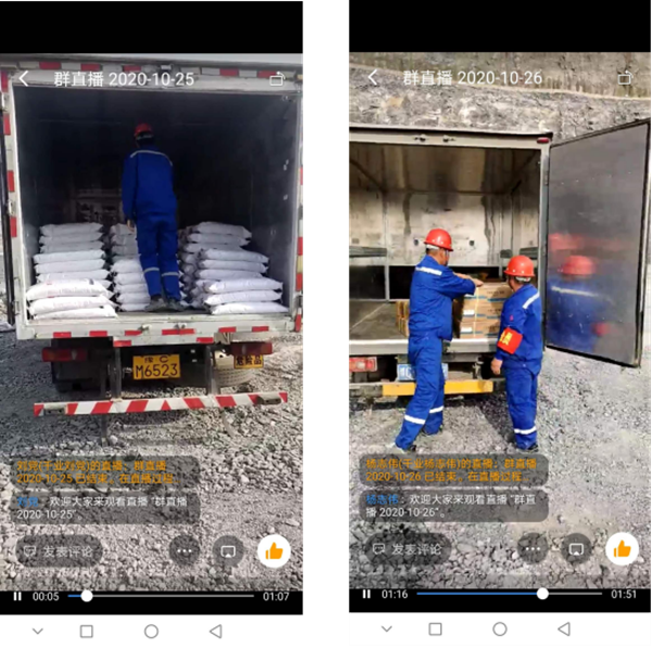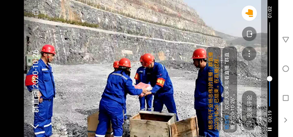 當(dāng)運(yùn)輸巖石粉狀大包和電子雷管的車(chē)到達(dá)作業(yè)地點(diǎn)后,對(duì)數(shù)量進(jìn)行清點(diǎn),卸車(chē)。直播開(kāi)始。
