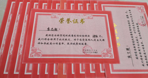 經(jīng)過幾日的募捐,蘭陵分公司共籌集善款8000余元。3月25日,分公司安環(huán)科長(zhǎng)孟令民同志,代表分公司將所籌善款轉(zhuǎn)交蘭陵縣紅十字會(huì)。紅十字會(huì)工作人員表示會(huì)將善款上交省紅十字會(huì),全部用于新冠病毒疫情防控工作。并對(duì)捐款表示十分感謝,對(duì)此崇高的人道主義精神和奉獻(xiàn)愛心的善舉,表示誠(chéng)摯的敬意。最后頒發(fā)給捐贈(zèng)者榮譽(yù)證書。