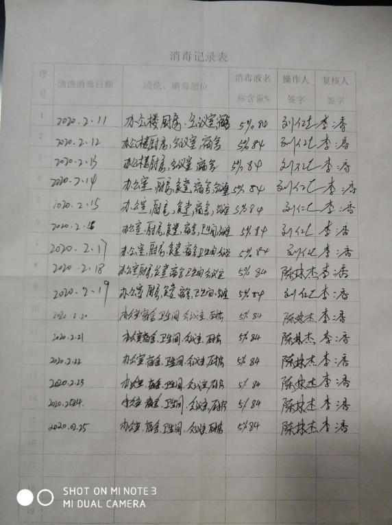 3、未返工人員自我監(jiān)測 四、搞好消毒衛(wèi)生,營造健康環(huán)境 分公司組織專人每日對生活區(qū)辦公室、餐廳、衛(wèi)生間等場所每日消毒兩次,要求員工做好自我防護,勤消毒勤洗手,共同打造抗擊疫情的良好環(huán)境。