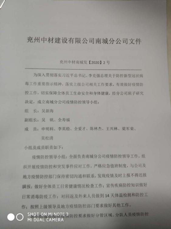 2020年伊始,一場突如其來的新冠疫情爆發(fā)于武漢,肆虐于全國,不斷攀升的疫情數(shù)據(jù)牽動著每個人的神經(jīng)。集團和公司對此次疫情高度重視,要求各下屬單位全力以赴應對疫情。為此南城分公司積極響應號召,全力開展疫情防控工作,堅持“疫情就是命令,防控就是責任”的原則,堅決打好疫情防控攻堅戰(zhàn)。 一、加強組織領導,強化防控意識 分公司以深入貫徹落實集團公司文件精神為目標,密切配合當?shù)卣ぷ?,成立以吳新海同志為首的疫情防控領導小組,細化人員責任,明確組織分工,從思想高度做好打贏防疫攻堅戰(zhàn)的準備。