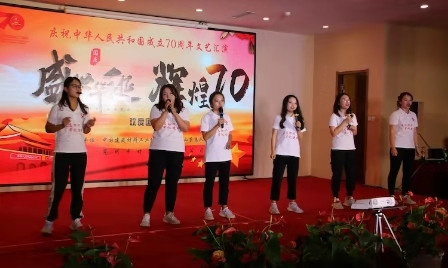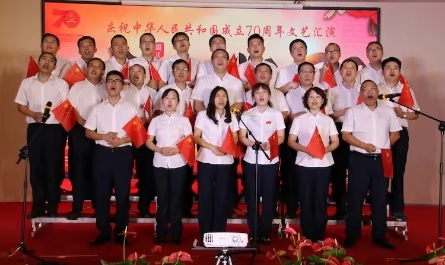 為慶祝新中國(guó)成立70周年 ,9月29日下午,由兗州中材和山東地質(zhì)總隊(duì)聯(lián)合舉辦的“盛世華誕 輝煌70”國(guó)慶文藝匯演隆重舉行。 一首首優(yōu)美的歌聲、一段段好看的舞蹈表達(dá)了對(duì)祖國(guó)母親生日的祝福。一首《國(guó)家》,把祖國(guó)這70年來(lái)的情懷用歌曲的形式表達(dá),祝愿我們祖國(guó)的明天會(huì)越來(lái)越好,家是國(guó),國(guó)更是家。一首《映山紅》,那優(yōu)美的旋律、深情的歌詞表達(dá)了對(duì)紅軍的熱愛(ài)和對(duì)英雄的崇敬之情。一首《今天是你的生日》表達(dá)了對(duì)祖國(guó)母親深深的熱愛(ài)和祝福。本次匯演形式多種多樣,精彩紛呈。包括舞蹈、合唱、獨(dú)唱、相聲小品、樂(lè)器獨(dú)奏等。          通過(guò)本次文藝匯演增進(jìn)了兗州中材和山東地質(zhì)總隊(duì)的友誼,展現(xiàn)了“不忘初心、牢記使命”主題教育的新成果,增強(qiáng)國(guó)慶的節(jié)日氛圍,更加增強(qiáng)全體職工的愛(ài)國(guó)之心。 |