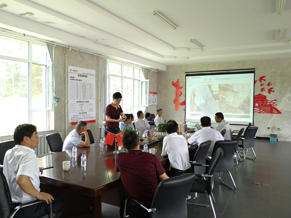 郭總、柯總及相關(guān)領(lǐng)導(dǎo)首先在會議室聽取舒蘭項目部建設(shè)情況匯報,以及《季德鉬礦地質(zhì)簡述及礦石損失、貧化管理方案》的專題匯報,并查看了礦山相關(guān)礦石、巖石標(biāo)本,了解季德鉬礦礦石品位及分布情況。