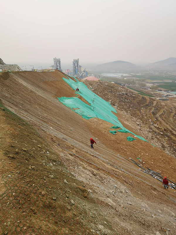 2018年12月20日,由兗州中材平陰分公司承擔施工任務的平陰山水道路及邊坡治理工程在分公司的精心組織下順利開工了。所治理的排渣場工程處于平陰山水礦區(qū)西側(cè),由于基建期修建運礦道路,爆破后及后期排渣在原山坡地形上形成高斷面、坡度較大的地形,存在滑坡的安全隱患,加之一條縣道從山坡下穿過,嚴重影響平陰山水礦山形象建設,因此甲方下定決心進行治理。 兗州中材平陰分公司接收此項施工任務后,對該項工程非常重視,項目經(jīng)理劉占中組織精干技術力量及設備在取得第一手詳細測量資料的基礎上,多次召開分公司會議討論施工方案和方法,并與業(yè)主及設計單位多次溝通,敲定最終施工方案。 工程開工以后,分公司組織兩臺卡特336挖機、破碎錘按照施工設計方案對排渣場進行分臺階治理。分臺階治理過程中,為防止坡面上的大塊及其他雜物滾進邊坡下方的農(nóng)田,采用鋼絲繩捆綁,用挖掘機拖拽就地挖深坑掩埋的辦法進行處理,最大程度的減少了對下方農(nóng)田的干擾和破壞。經(jīng)過四十天的緊張施工,邊坡分臺階治理終于完工。 經(jīng)過業(yè)主、監(jiān)理及設計單位共同初步驗收,達到設計要求后,進行臺階及坡面覆土工作。按照設計要求,覆土厚度大于15厘米。掛網(wǎng)采用規(guī)格為5cm*5cm網(wǎng)格的鋼絲網(wǎng)進行全坡面覆蓋,加長錨桿固定的方式進行。在專業(yè)人員的努力下,經(jīng)過二十天的奮戰(zhàn),17000平方米的掛網(wǎng)工作順利完工。  2019年4月5日當天噴播工作全面展開。選用的噴植植物由紫翠槐、胡枝子、荊條、多花木蘭、鹽膚木、刺槐等十幾種灌木及狗尾草、沙棘、苜蓿等十幾種草本植物組成,混合壤土進行噴植。 噴植混合土  噴植混合土 噴植后用纖維毯進行覆蓋,結(jié)合噴淋系統(tǒng),既可保溫、保濕,又可保護幼苗生長。  噴植后覆蓋纖維毯  噴淋澆灌 讓人驚奇和欣慰的是,在進行噴植過程中,之前的幼苗已經(jīng)偷偷的冒出了頭,形成一片綠毯。根據(jù)設計的綠化效果,植被系統(tǒng)層次分明、生長季節(jié)持續(xù)有爭奇斗艷的開花物種不斷綻放。到2019年5月7日,17000平方米的噴植工作已全部完成,全面進入維護保養(yǎng)階段。 噴播綠化工作對我們礦山工程施工來說是一項全新而又陌生的工作,每一道施工工序和流程,分公司安排專人收集施工數(shù)據(jù)、建立施工檔案,在施工全過程中積累了一定的經(jīng)驗。  綠化前排渣場  排渣場治理后 當前國家全面推進綠色礦山建設,我們將借助這次綠色礦山建設的東風,全面將把綠色礦山建設深入貫徹下去,同時我們堅信,當前播種的是綠色和希望,將來我們一定會擁抱一個美好的春天! 兗州中材平陰分公司(楊廷明) |