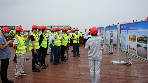 2021年9月18日,由中國(guó)水泥協(xié)會(huì)主辦,中材礦山建設(shè)有限公司、山水集團(tuán)協(xié)辦的第十五屆水泥礦山年會(huì)暨中國(guó)水泥協(xié)會(huì)礦山專業(yè)委員會(huì)第五次代表大會(huì)參會(huì)代表蒞臨兗州中材有限公司平陰分公司青龍山礦區(qū)參觀。中材礦山胡總、兗州中材劉總、平陰山水總經(jīng)理丁宗新、黨委書記侯福存及相關(guān)領(lǐng)導(dǎo)接待了與會(huì)代表。  參觀團(tuán)先后參觀了平陰山水公司智能化控制室、數(shù)字化礦山控制室,并到礦山現(xiàn)場(chǎng)進(jìn)行實(shí)地參觀。  我方代表結(jié)合現(xiàn)場(chǎng)對(duì)我公司的‘六個(gè)標(biāo)準(zhǔn)化’進(jìn)行了細(xì)致的講解,參觀團(tuán)詳細(xì)了解并觀看了各平臺(tái)的開采情況、路王漿道路運(yùn)行情況、噴淋抑塵系統(tǒng)的抑塵效果、預(yù)裂邊坡爆破后效果以及GPS智能卡車調(diào)度系統(tǒng)。  通過實(shí)地參觀和交流,參會(huì)代表對(duì)平陰公司數(shù)字化礦山+綠色礦山有了更直觀的了解,對(duì)數(shù)字化礦山開采的先進(jìn)性、可靠性以及對(duì)綠色礦山的建設(shè)給予了肯定。