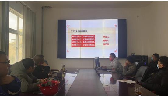 在礦山現(xiàn)場(chǎng)召開(kāi)到崗一線員工“節(jié)后復(fù)工收心會(huì)”,趕走“節(jié)后綜合癥”,調(diào)整心態(tài),全身心回歸工作,增強(qiáng)節(jié)后安全意識(shí)。