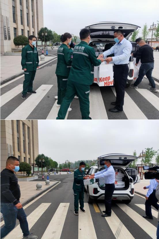 寶豐分公司經(jīng)理宋道明與中醫(yī)院急救科護(hù)士交談:“你們辛苦了,目前疫情形勢嚴(yán)峻,你們堅守崗位、迎難而上,為疫情防控做出了突出貢獻(xiàn),我代表兗州中材寶豐分公司祝你們節(jié)日快樂。”