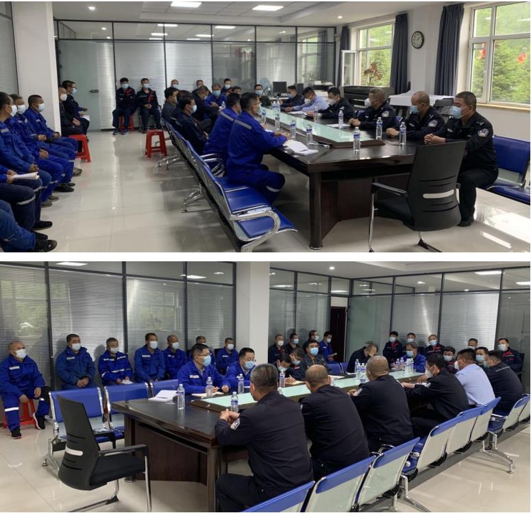 董政委(中)、于副局長(左二)、尚大隊(duì)長(左一)、劉所長(右二)、羅指導(dǎo)員(右一) 于副局長指出,官地鐵礦礦區(qū)具有“位置偏僻”、“人員眾多、來源廣泛、流動(dòng)性大”等特點(diǎn),針對(duì)上述特點(diǎn),用人單位要加強(qiáng)安全管理、安全教育培訓(xùn)和疫情防控,入職職工須具備無犯罪記錄證明,且必須經(jīng)過崗前“三級(jí)”安全教育培訓(xùn),對(duì)新到礦區(qū)人員按照和龍市疫情防空政策進(jìn)行管控,人員信息及時(shí)上報(bào)先鋒派出所。 董政委指出,礦區(qū)受疫情影響封控,人員情緒易產(chǎn)生波動(dòng),用人單位要加強(qiáng)職工思想疏導(dǎo),以及安全意識(shí)、法律意識(shí)教育,避免安全生產(chǎn)事故、事件以及治安事件、刑事案件的發(fā)生。
