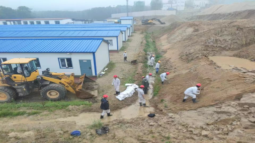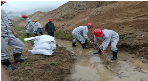 2022年6月20日早6點(diǎn),接應(yīng)急管理部門通知吉林地區(qū)預(yù)計(jì)未來24小時(shí)內(nèi)將有強(qiáng)降雨,舒蘭分公司項(xiàng)目經(jīng)理宋憲軍緊急通知各科室人員,組織對(duì)現(xiàn)場(chǎng)、生活區(qū)、炸藥庫、維修車間等地點(diǎn)進(jìn)行了防汛設(shè)施檢查。生活區(qū)東側(cè)邊坡被臨近公司時(shí)候后未進(jìn)行修整,加之連續(xù)降雨一整夜,東側(cè)邊坡垮塌,淹沒排水溝,造成堵塞。 接到通知后,生產(chǎn)科,立即調(diào)用裝載機(jī)趕到現(xiàn)場(chǎng),組織員工帶好防汛裝備趕到現(xiàn)場(chǎng)?,F(xiàn)場(chǎng)負(fù)責(zé)人周浩講“裝載機(jī)立即清理邊坡上的塌陷料,生產(chǎn)科組織人員去上游疏通水道,安全科和設(shè)備科組織人員去邊坡上面挖掘水溝設(shè)置擋墻,避免水流二次破壞邊坡”,任務(wù)分配完畢后,各科室?guī)ьI(lǐng)人員緊鑼密鼓的組織起來。