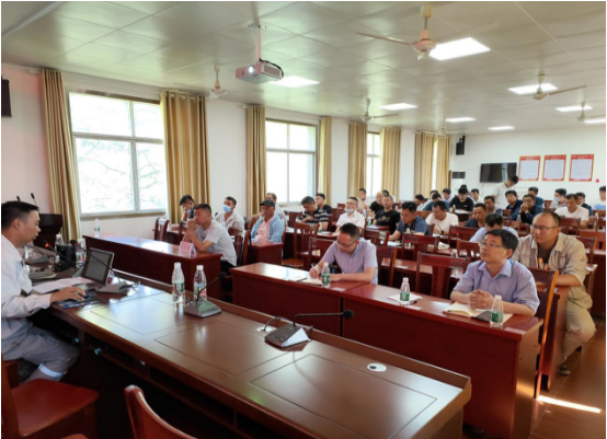 現(xiàn)場(chǎng)觀(guān)摩結(jié)束后,全體人員來(lái)到愛(ài)民鄉(xiāng)政府,分公司副經(jīng)理肖波、夏曉陽(yáng)就礦山爆破安全、邊坡控制爆破技術(shù)及現(xiàn)場(chǎng)安全施工管理等方面對(duì)全體參會(huì)人員進(jìn)行培訓(xùn)。