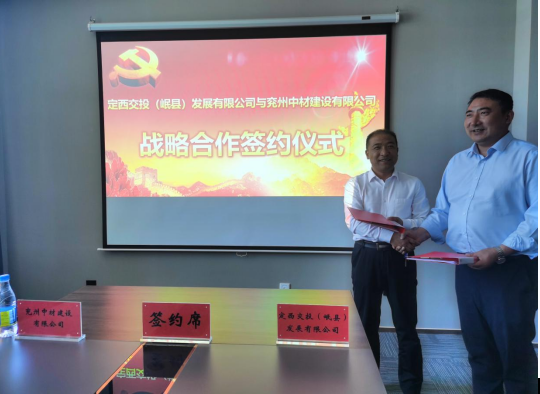 | 6月24日12時(shí),定西交投(岷縣)發(fā)展有限公司與兗州中材建設(shè)有限公司戰(zhàn)略合作簽約儀式在定西市麗楓酒店舉行,參加簽約儀式的有定西市交通投資有限公司黨支部書記、董事長、總經(jīng)理牛軍林、副總經(jīng)理陳宏斌、副總經(jīng)理李斌、定西交投工會(huì)主席、定西交投(岷縣)發(fā)展有限公司董事長王亞斌以及兗州中材建設(shè)有限公司楊云龍副總經(jīng)理等相關(guān)負(fù)責(zé)人,雙方在洮河中寨制砂項(xiàng)目等領(lǐng)域達(dá)成戰(zhàn)略合作,標(biāo)志著定西交投與兗州中材合作項(xiàng)目正式進(jìn)入實(shí)施階段。