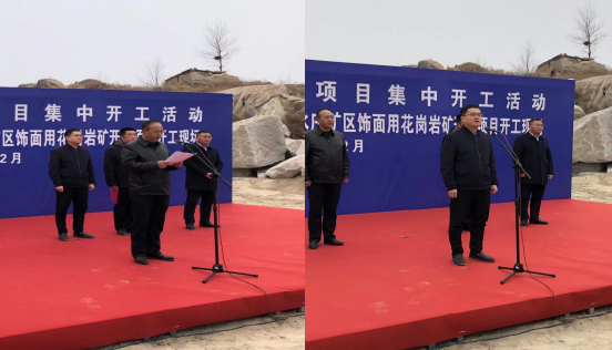 萊州市委常委、市委辦公室主任王恒齊對兗州中材入駐萊州表示歡迎,希望項(xiàng)目全體職工盡心盡力,盡職盡責(zé),打造精品工程,綠色礦山,助力萊州石材產(chǎn)業(yè)快速振興,并宣布正式開工。