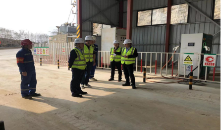 張漢武總經(jīng)理對礦卡車充電棚進(jìn)行查看