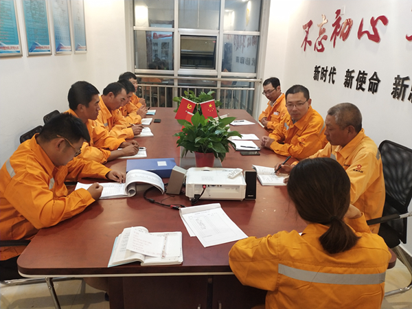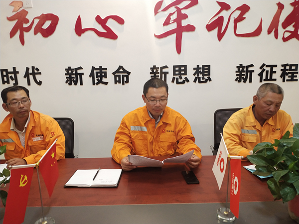 按上級黨委統(tǒng)一部署,寧陽項目部于9月23日晚召開全體員工結(jié)合中材礦山劉書記講話精神,開展“不忘初心,牢記使命”主題教育活動。 會上,劉經(jīng)理首先帶領(lǐng)全體員工認真學習《在中材礦山建設(shè)有限公司開展“不忘初心,牢記使命”主題教育部署會上的講話》。全體員工分別針對“不忘初心,牢記使命”主題教育活動展開發(fā)言討論。最后,根據(jù)《在中材礦山建設(shè)有限公司開展“不忘初心,牢記使命”主題教育部署會上的講話》會議精神,劉經(jīng)理呼吁全體員工要積極努力地向黨靠攏,今后更加緊密團結(jié)在以習近平同志為核心的黨中央周圍,高舉習近平新時代中國特色社會主義思想偉大旗幟,扎實做好“不忘初心,牢記使命”主題教育工作,為全面完成集團和股份公司下達的各項經(jīng)濟指標而努力奮斗,以優(yōu)異的成績迎接新中國成立70周年   |