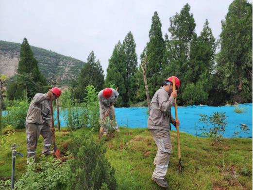 近年來,礦山變綠成為我國礦山發(fā)展的主旋律。河南片區(qū)黨支部以黨建為引領(lǐng),認(rèn)真踐行“綠水青山就是金山銀山”的生態(tài)理念,堅定不移走“生態(tài)優(yōu)先、綠色低碳”的發(fā)展新路,以黨建統(tǒng)一思想、以黨建激發(fā)活力、以黨建凝聚人心,以紅色黨建助力綠色礦山建設(shè)抓手,將生態(tài)保護(hù)放在與生產(chǎn)、安全同等重要的位置。河南片區(qū)黨支部按照綠色發(fā)展理念,著力推動綠色礦山建設(shè),經(jīng)過不懈的努力,僅白坪分公司礦區(qū)已累計種植樹苗幾千余棵。