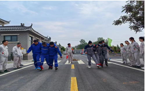 第二項(xiàng)比賽是考驗(yàn)參賽人員協(xié)調(diào)配合能力的三人三足,江雪野、王曉琦、吳憾代表兗州中材禹州第四分公司參賽,三人互相配合,50米的距離沒(méi)有發(fā)生失誤,完美體現(xiàn)了三人之間的默契。
