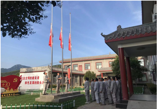 伴隨著雄壯的《義勇軍進(jìn)行曲》,五星紅旗冉冉升起,隨風(fēng)飄揚(yáng),全體員工齊唱國(guó)歌,向國(guó)旗行注目禮,目光凝視著迎風(fēng)飄揚(yáng)的五星紅旗,心中寄托著對(duì)黨無(wú)限的熱愛(ài)、崇高的敬意以及深情的祝福。