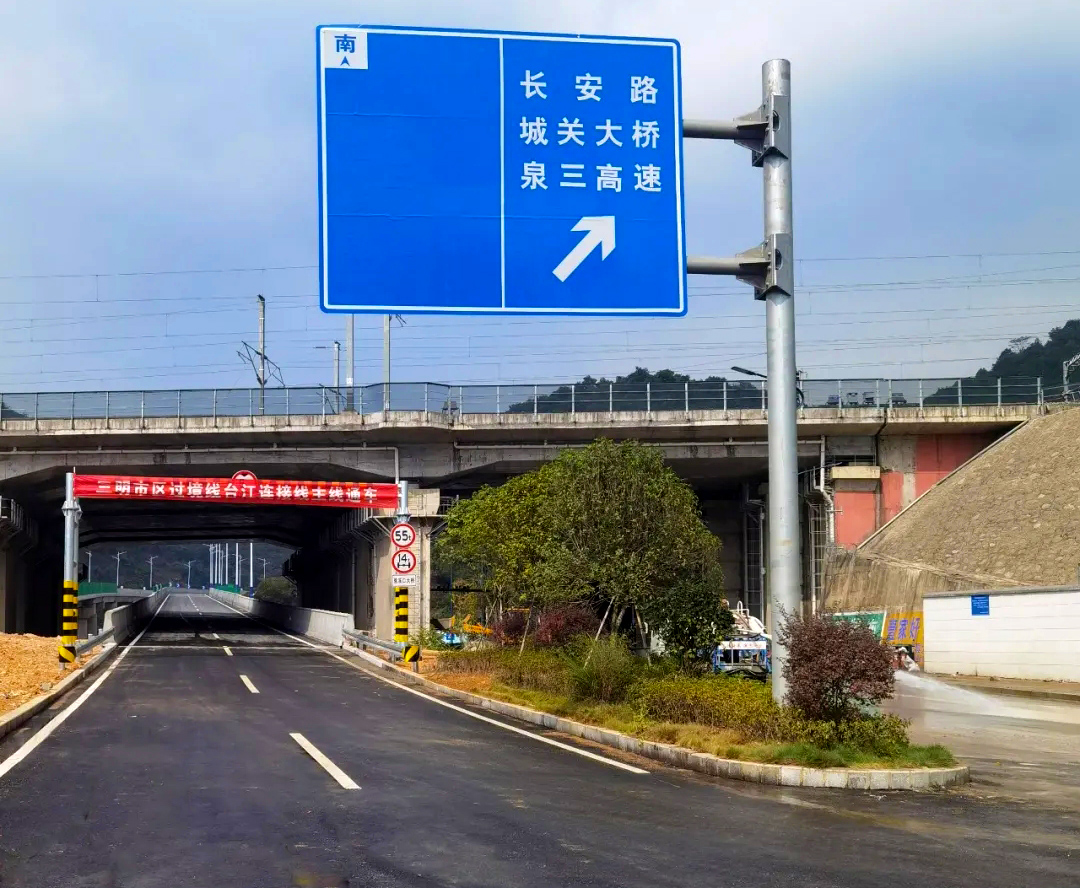10月30日,國(guó)道G205線市區(qū)過(guò)境線至三明站連接線建成通車。該項(xiàng)目總投資2.6億元,線路全長(zhǎng)2.56公里,起于臺(tái)江大橋西側(cè)橋頭,下穿南三龍快速鐵路,上跨長(zhǎng)安路、鷹廈鐵路,終點(diǎn)與國(guó)道205線市區(qū)過(guò)境線相接,按城市主干道兼二級(jí)公路等級(jí)標(biāo)準(zhǔn)設(shè)計(jì),雙向四車道,設(shè)計(jì)時(shí)速60公里/小時(shí)。