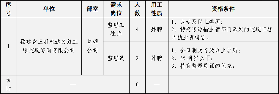 (一)公告。招聘崗位、人數(shù)、任職資格等信息在“三明海峽人才網(wǎng)”、“最三明”微信公眾號(hào)及“三明市路橋集團(tuán)”官網(wǎng)(www.023724.com)向社會(huì)統(tǒng)一公告。