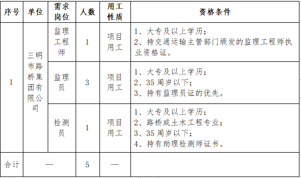 (二)報名。采取網(wǎng)絡(luò)報名方式,請應(yīng)聘者下載填寫《三明市路橋集團有限公司公開招聘工作人員報名登記表》(附件),投遞至郵箱smslqjt@163.com(文件命名為“姓名+應(yīng)聘崗位”)。