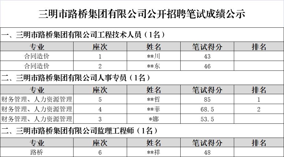 市路橋集團(tuán)公開(kāi)招聘筆試環(huán)節(jié)已于2022年10月11日完成,現(xiàn)將筆試成績(jī)予以公示: