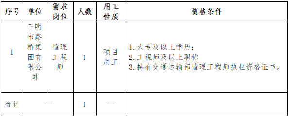 (一)公告。招聘崗位、人數(shù)、任職資格等信息在 “三明市路橋集團”官網(wǎng)(www.023724.com)向社會統(tǒng)一公告。
