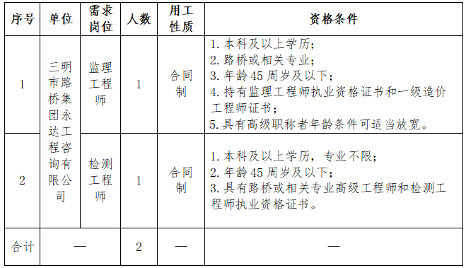 (一)公告。招聘崗位、人數(shù)、任職資格等信息在 “三明市路橋集團”官網(wǎng)(www.023724.com)向社會統(tǒng)一公告。