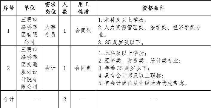 (一)公告。招聘崗位、人數(shù)、任職資格等信息在 “三明市路橋集團(tuán)”官網(wǎng)(www.023724.com)向社會(huì)統(tǒng)一公告。