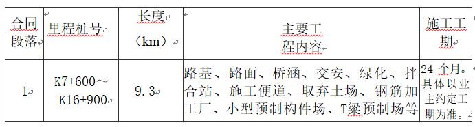2.2建設(shè)規(guī)模:大田廣平至安溪官橋高速公路三明段 P1-2 項(xiàng)目K7+600~K16+900段路基工程(包含建設(shè)互通立體交叉),段落長度 9.3 公里。主要工程內(nèi)容:路基土石方工程、邊坡防護(hù)工程、路基排水工程、特殊路基處理、橋梁工程、通道涵洞工程、交通安全設(shè)施工程及綠化工程、拌合站、施工便道、取棄土場、鋼筋加工廠、小型預(yù)制構(gòu)件場、T粱預(yù)制場等。