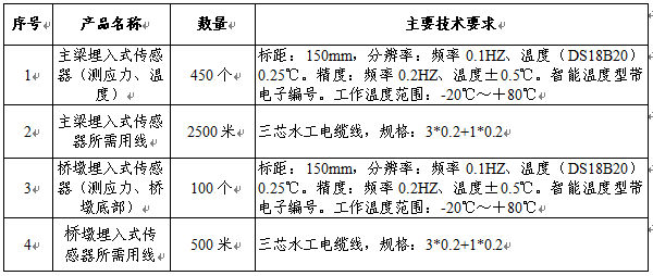 (一)采購內(nèi)容:大田廣平至安溪官橋高速公路三明段懸澆橋梁施工監(jiān)控量測埋入式傳感器及所需用線一批。
