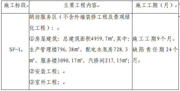 2.4遴選范圍和內(nèi)容:胡坊服務區(qū)房屋建筑、安裝工程和室外工程施工(不含外墻裝修工程及景觀綠化工程)。