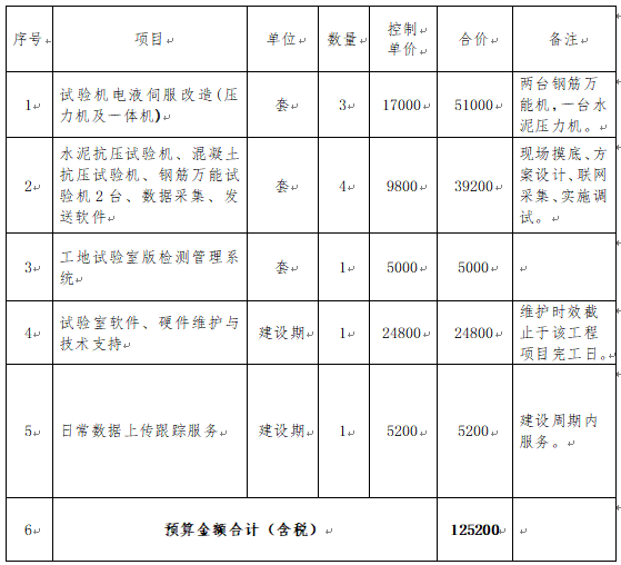 根據(jù)高速公路標(biāo)準(zhǔn)化建設(shè)要求,工地試驗室需實時上傳試驗檢測數(shù)據(jù),供應(yīng)商需提供數(shù)據(jù)采集軟件系統(tǒng)及接入等信息化技術(shù)服務(wù)。采購項目服務(wù)內(nèi)容及預(yù)算費用明細(xì)如下表: